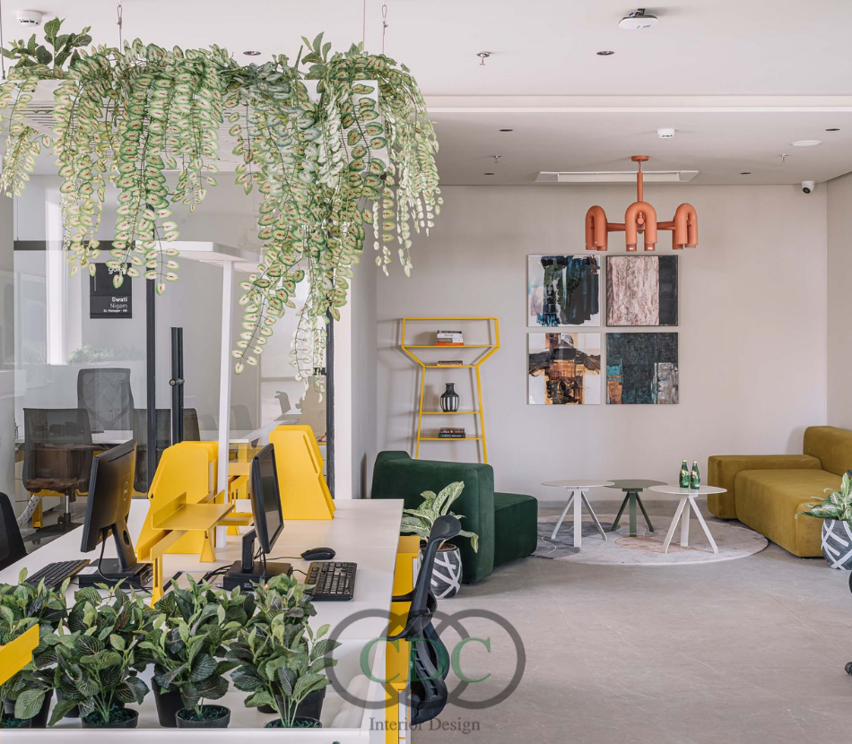 Phong cách xanh – ECO chú trọng vào việc đưa thiên nhiên vào không gian làm việc, giúp văn phòng trở nên gần gũi và dễ chịu hơn. Cây xanh được bố trí ở nhiều khu vực khác nhau như bàn làm việc, phòng họp, hành lang hay khu vực nghỉ ngơi để tạo cảm giác thư giãn. Ngoài ra, vật liệu tự nhiên như gỗ, tre, đá tự nhiên hoặc vải hữu cơ cũng được sử dụng nhiều trong thiết kế. Đây là cách chọn phong cách nội thất văn phòng phù hợp cho những doanh nghiệp mong muốn xây dựng môi trường làm việc cân bằng, thân thiện và gắn liền với hình ảnh thương hiệu “xanh”.
