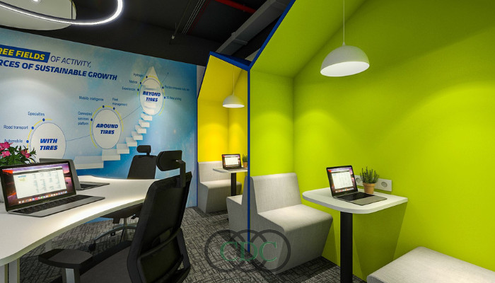 Không gian văn phòng được tạo nên mang đậm dấu ấn sáng tạo, hiện đại và phù hợp với văn hóa doanh nghiệp quốc tế.