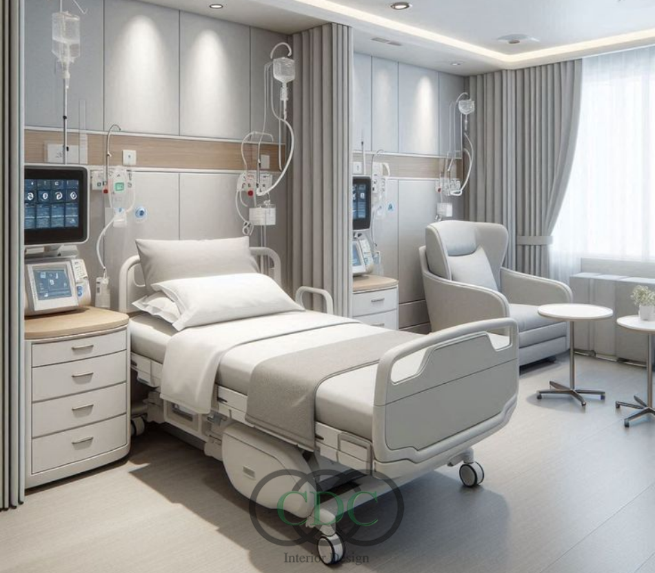Nội thất trong bệnh viện hiện đại thường được thiết kế tinh gọn, không cầu kỳ nhưng vẫn đảm bảo tính tiện nghi và công năng. Ghế ngồi, bàn làm việc, giường bệnh đều được lựa chọn theo tiêu chí bền, dễ vệ sinh và phù hợp với môi trường y tế. Trong thiết kế bệnh viện hiện đại, CDC Việt Nam Group chú trọng lựa chọn nội thất mang phong cách hiện đại, tinh giản, giúp bệnh viện vừa đẹp mắt vừa thuận lợi trong vận hành.