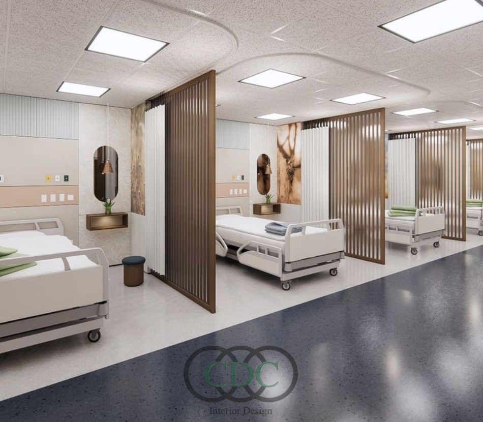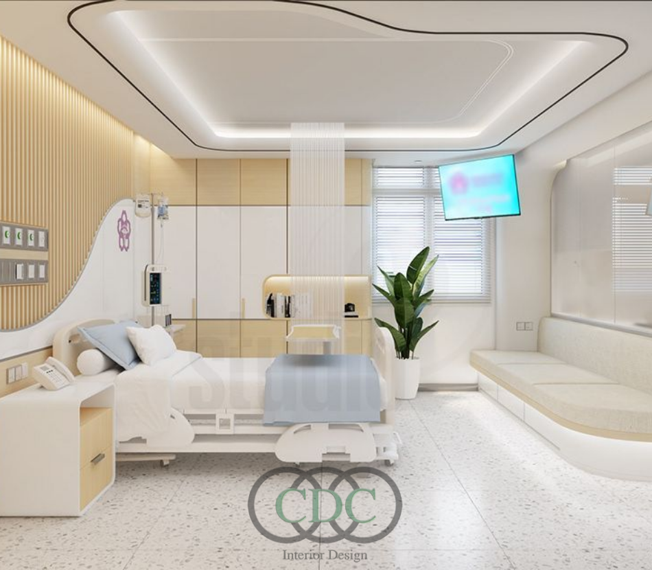 Trong thiết kế bệnh viện hiện đại, màu sắc và bố cục không gian giữ vai trò quan trọng trong việc tạo cảm xúc và ấn tượng cho bệnh nhân. Các gam màu tươi sáng, trung tính thường được sử dụng để mang lại cảm giác dễ chịu, sạch sẽ. Bố cục không gian được sắp xếp khoa học, giúp tối ưu ánh sáng và tạo sự cân đối thẩm mỹ. CDC Việt Nam Group áp dụng các giải pháp thiết kế tinh tế, mang đến không gian bệnh viện vừa hiện đại vừa gần gũi.