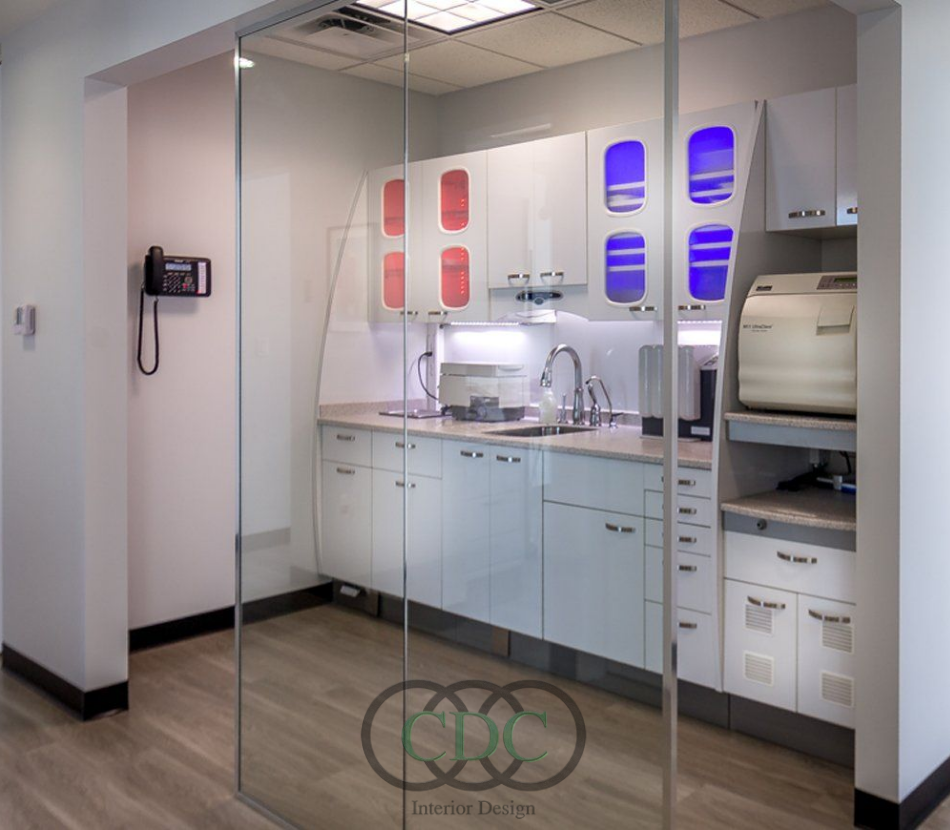 Khi thực hiện thiết kế khu vực vô trùng trong phòng khám, bố cục không gian phải được quy hoạch rõ ràng giữa các khu chức năng: khu rửa – khu tiệt trùng – khu bảo quản dụng cụ – khu thao tác. Luồng di chuyển giữa các khu vực này phải một chiều, tránh cắt chéo để đảm bảo quy trình vô trùng tuyệt đối. Phòng vô trùng cần được thiết kế kín, có cửa ra vào có đệm khí hoặc hệ thống kiểm soát không khí để ngăn ngừa ô nhiễm từ bên ngoài. Hệ thống chiếu sáng phải đảm bảo độ sáng tiêu chuẩn, không tạo bóng hoặc chói lóa, giúp bác sĩ dễ dàng thao tác chính xác.