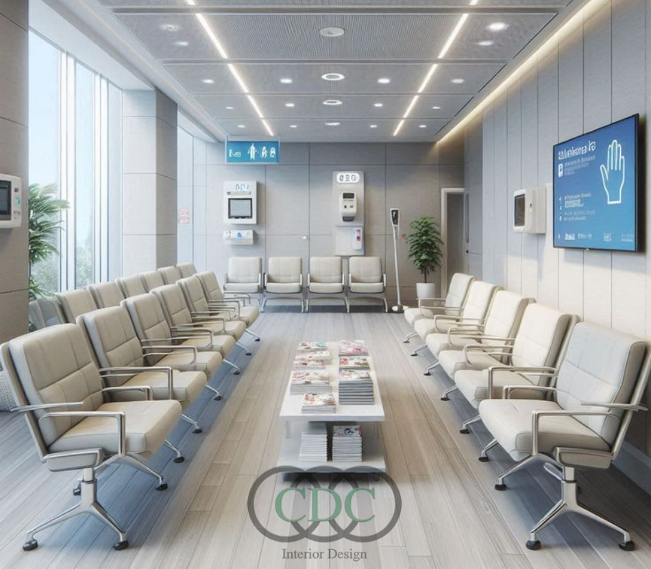 Trong môi trường y tế, yếu tố an toàn và vệ sinh là yêu cầu bắt buộc. Vì vậy, thiết kế phòng chờ bệnh viện cần tuân thủ nghiêm ngặt các tiêu chuẩn về phòng chống lây nhiễm chéo. Các khu vực ngồi chờ phải được bố trí giãn cách hợp lý, đảm bảo thông thoáng và dễ vệ sinh. CDC Việt Nam Group luôn tuân thủ nghiêm ngặt các tiêu chuẩn y tế khi thực hiện thiết kế phòng chờ bệnh viện, giúp không gian vừa đảm bảo thẩm mỹ vừa đạt yêu cầu về an toàn sức khỏe, tạo sự yên tâm tuyệt đối cho bệnh nhân và nhân viên y tế.