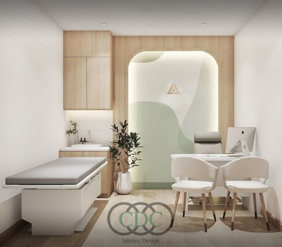 Nội thất y tế trong thiết kế phòng khám không chỉ cần đảm bảo công năng mà còn phải đạt tiêu chuẩn chuyên dụng cho ngành y tế. Tủ thuốc, bàn khám, ghế nha khoa, giường bệnh nhân, kệ thiết bị đều được thiết kế theo quy chuẩn, giúp bác sĩ thuận tiện trong quá trình khám chữa. Đồng thời, tính thẩm mỹ cũng rất quan trọng – nội thất cần có thiết kế hiện đại, màu sắc hài hòa, tạo cảm giác thân thiện, giảm căng thẳng cho bệnh nhân. CDC Việt Nam Group thường kết hợp giữa nội thất y tế chuyên dụng và các chi tiết trang trí tinh tế để tạo nên một không gian vừa chuyên nghiệp vừa gần gũi, nâng cao trải nghiệm dịch vụ y tế.