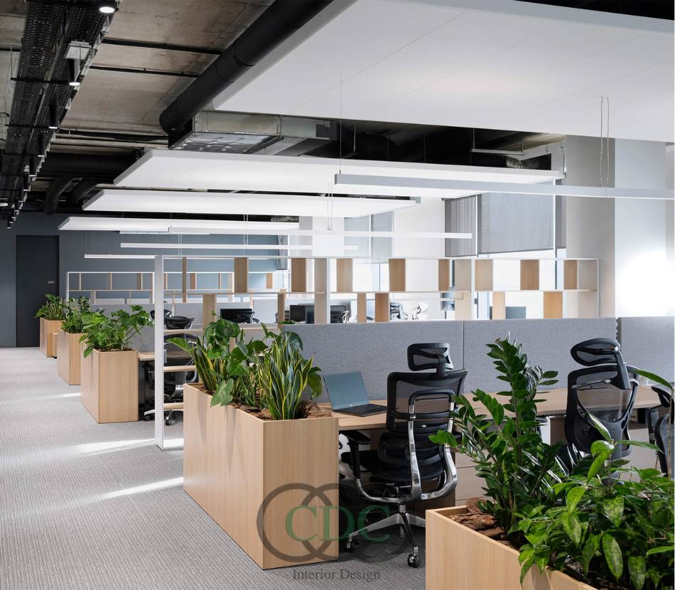 Xu hướng “thiết kế xanh” đang ngày càng được áp dụng rộng rãi trong thiết kế văn phòng nhà máy điện tử. CDC Việt Nam Group luôn định hướng khách hàng đến những giải pháp tiết kiệm năng lượng và bảo vệ môi trường. Từ việc tận dụng ánh sáng tự nhiên, sử dụng thiết bị điện tiết kiệm năng lượng, cho đến việc chọn vật liệu thân thiện môi trường như gỗ công nghiệp tái chế, sơn không chứa VOC hay kính Low-E cách nhiệt, mọi yếu tố đều được tính toán kỹ lưỡng.