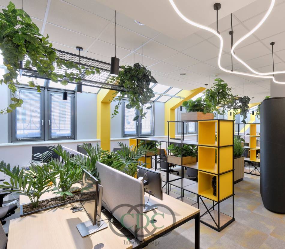 Một xu hướng nổi bật trong thiết kế văn phòng nhà máy tại miền Nam hiện nay là hướng tới “xanh hóa” không gian làm việc. Điều này không chỉ giúp cải thiện môi trường mà còn nâng cao hình ảnh thương hiệu doanh nghiệp trong mắt đối tác. CDC Việt Nam Group áp dụng các giải pháp thiết kế xanh như trồng cây nội thất, sử dụng giếng trời, vật liệu thân thiện môi trường và hệ thống chiếu sáng LED tiết kiệm điện. Các cửa sổ lớn và lam che nắng giúp tận dụng ánh sáng tự nhiên, giảm nhiệt và tiết kiệm năng lượng.